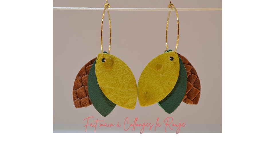 Trois feuilles en cuir et créole en acier doré
